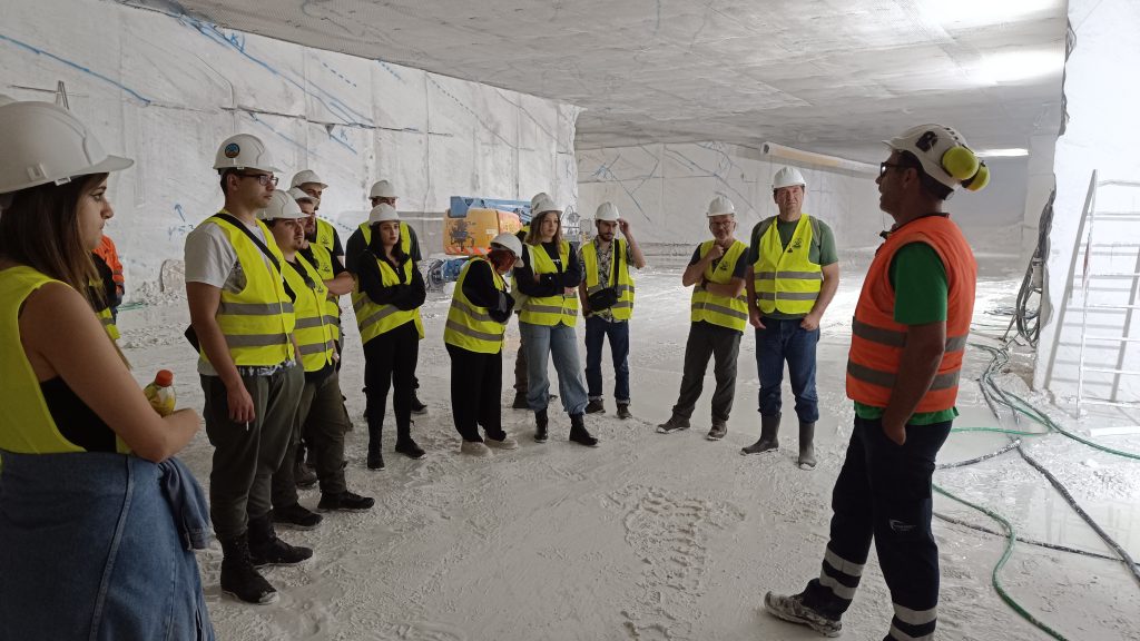 Για τρίτη συνεχή χρόνια, η Iktinos Hellas S.A μας φιλοξένησε στο σύγχρονο εργοστάσιο επεξεργασίας μαρμάρου καθώς και στο υπόγειο λατομείο μαρμάρου στο Βώλακα, ένα λατομείο-υπόδειγμα του τι μπορούν να καταφέρουν οι Έλληνες Μηχανικοί παρά το δύσκολο επιχειρησιακό περιβάλλον. Κάθε χρόνο μένουμε έκπληκτοι με την πρόοδο της υπόγειας εκμετάλλευσης στο Βώλακα, αποτέλεσμα της υψηλής τεχνογνωσίας του προσωπικού της εταιρείας και της αγάπης για το αντικείμενο του μαρμάρου. Ελπίζουμε η εμπειρία αυτή να αποτελέσει έμπνευση για τους φοιτητές και τις φοιτήτριές μας για την αυριανή τους σταδιοδρομία ως διπλωματούχοι Μηχανικοί Ορυκτών Πόρων. Ευχαριστούμε θερμά το προσωπικό της Ικτίνος Ελλάς, και ιδιαίτερα τον κ. Χαράλαμπο Αλμπανόπουλο, Διευθυντή Λατομείων της εταιρείας, και τους κκ. Σοφρώνιο Θεοδωρίδη και Δευκαλίων Παπαδόπουλο, για την οργάνωση της επίσκεψης, και την ξενάγηση στο εργοστάσιο και το υπόγειο λατομείο.