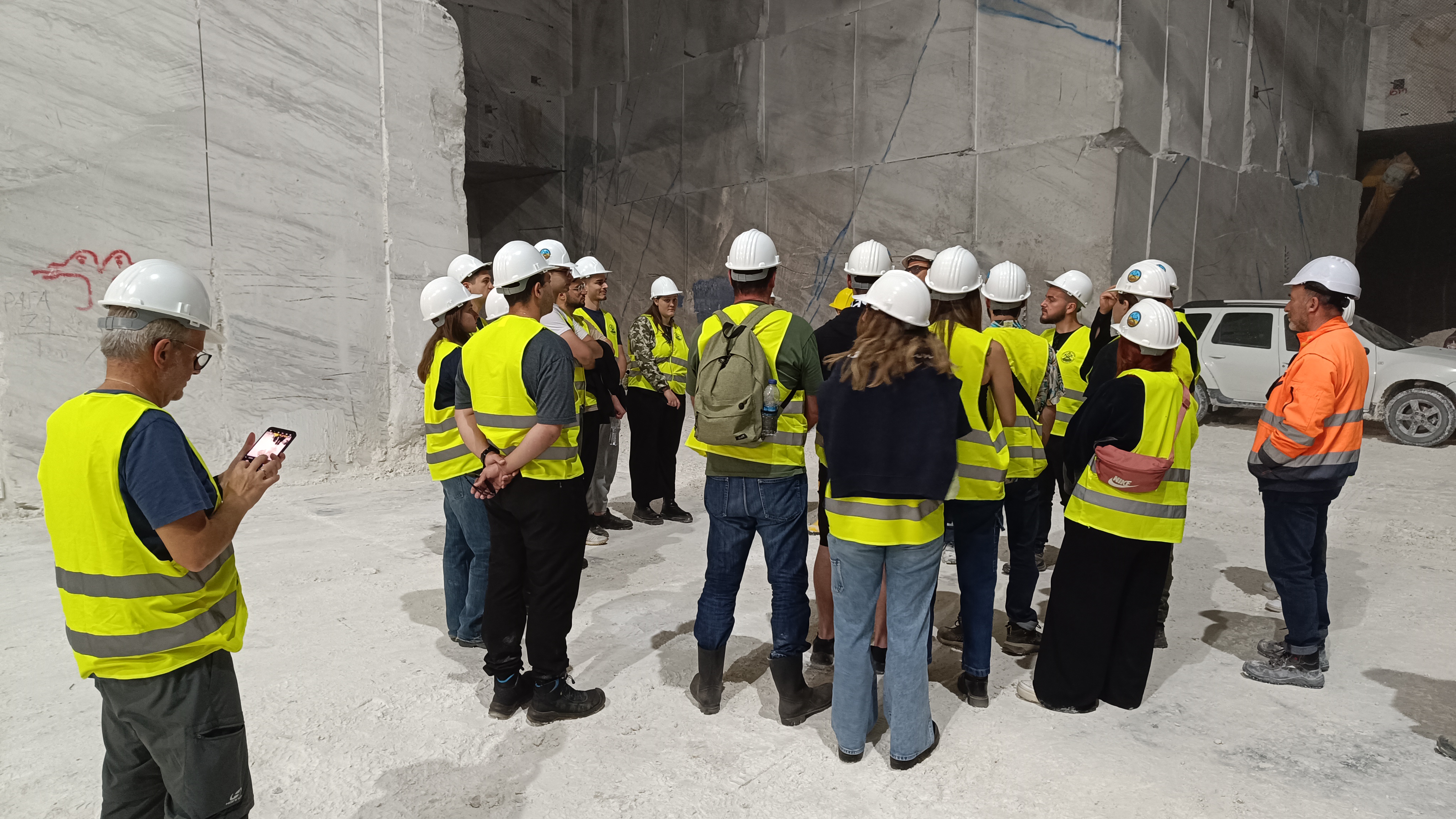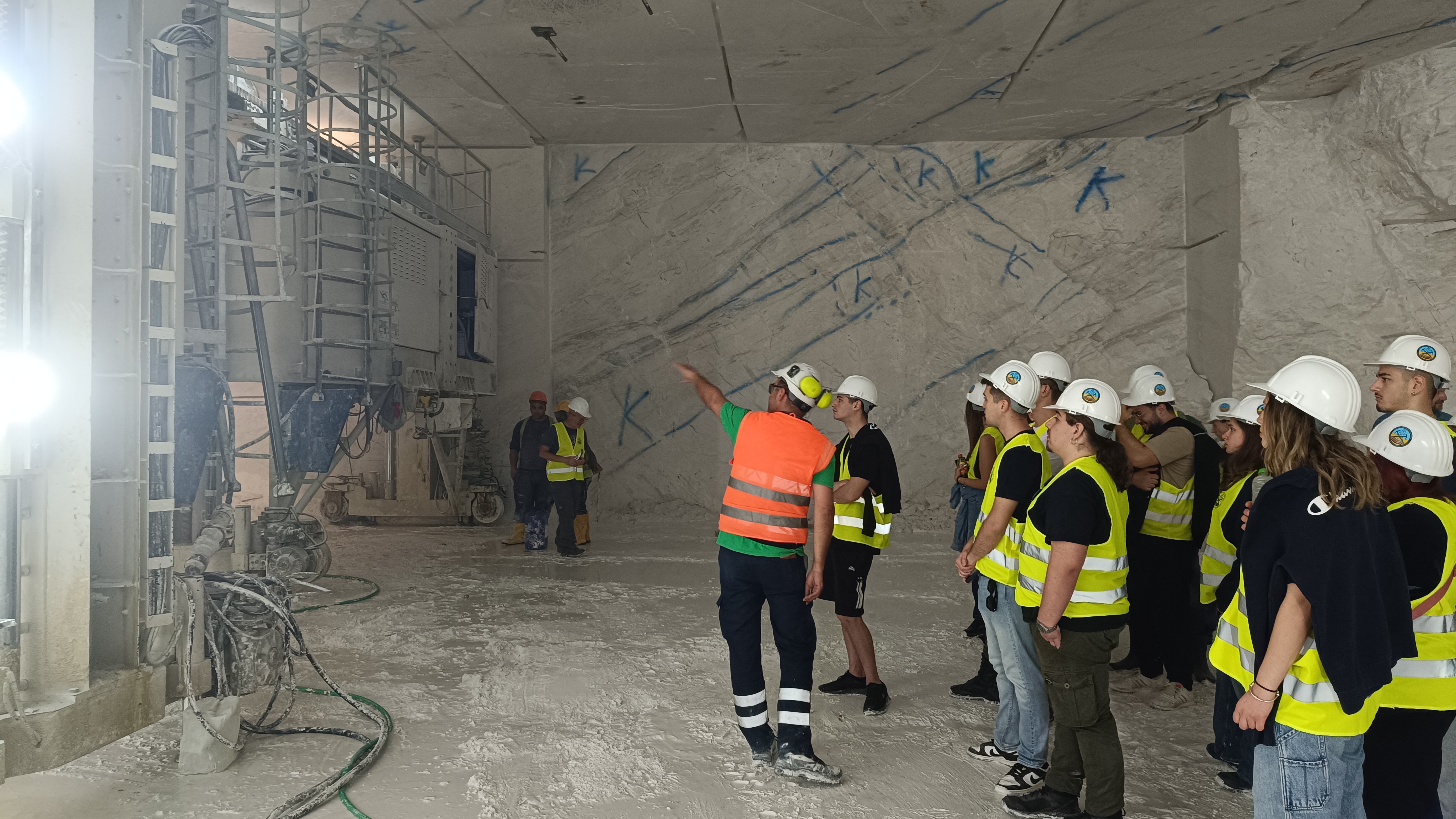 Για τρίτη συνεχή χρόνια, η Iktinos Hellas S.A μας φιλοξένησε στο σύγχρονο εργοστάσιο επεξεργασίας μαρμάρου καθώς και στο υπόγειο λατομείο μαρμάρου στο Βώλακα, ένα λατομείο-υπόδειγμα του τι μπορούν να καταφέρουν οι Έλληνες Μηχανικοί παρά το δύσκολο επιχειρησιακό περιβάλλον. Κάθε χρόνο μένουμε έκπληκτοι με την πρόοδο της υπόγειας εκμετάλλευσης στο Βώλακα, αποτέλεσμα της υψηλής τεχνογνωσίας του προσωπικού της εταιρείας και της αγάπης για το αντικείμενο του μαρμάρου. Ελπίζουμε η εμπειρία αυτή να αποτελέσει έμπνευση για τους φοιτητές και τις φοιτήτριές μας για την αυριανή τους σταδιοδρομία ως διπλωματούχοι Μηχανικοί Ορυκτών Πόρων. Ευχαριστούμε θερμά το προσωπικό της Ικτίνος Ελλάς, και ιδιαίτερα τον κ. Χαράλαμπο Αλμπανόπουλο, Διευθυντή Λατομείων της εταιρείας, και τους κκ. Σοφρώνιο Θεοδωρίδη και Δευκαλίων Παπαδόπουλο, για την οργάνωση της επίσκεψης, και την ξενάγηση στο εργοστάσιο και το υπόγειο λατομείο.